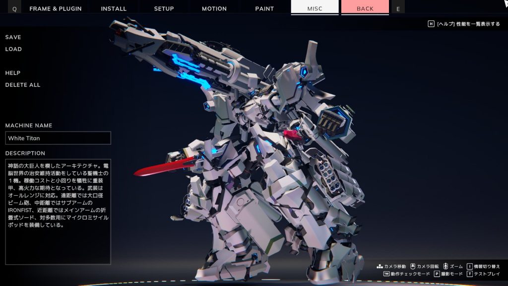 在景观模式中,你从一开始就可以使用所有部件。不需要在意性能限制,只需要如自己所愿地设计机体即可。