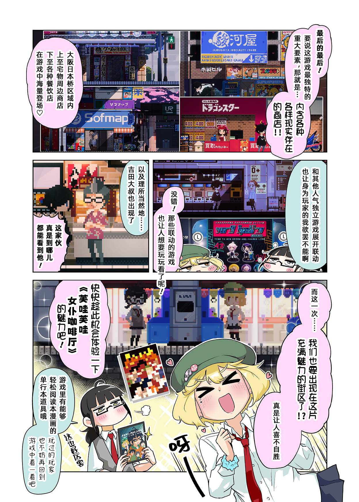 我们和骏河屋、sofmap、dragon star、super potato、彩虹卡拉OK等等在当地实际存在店铺的企业进行了联动。