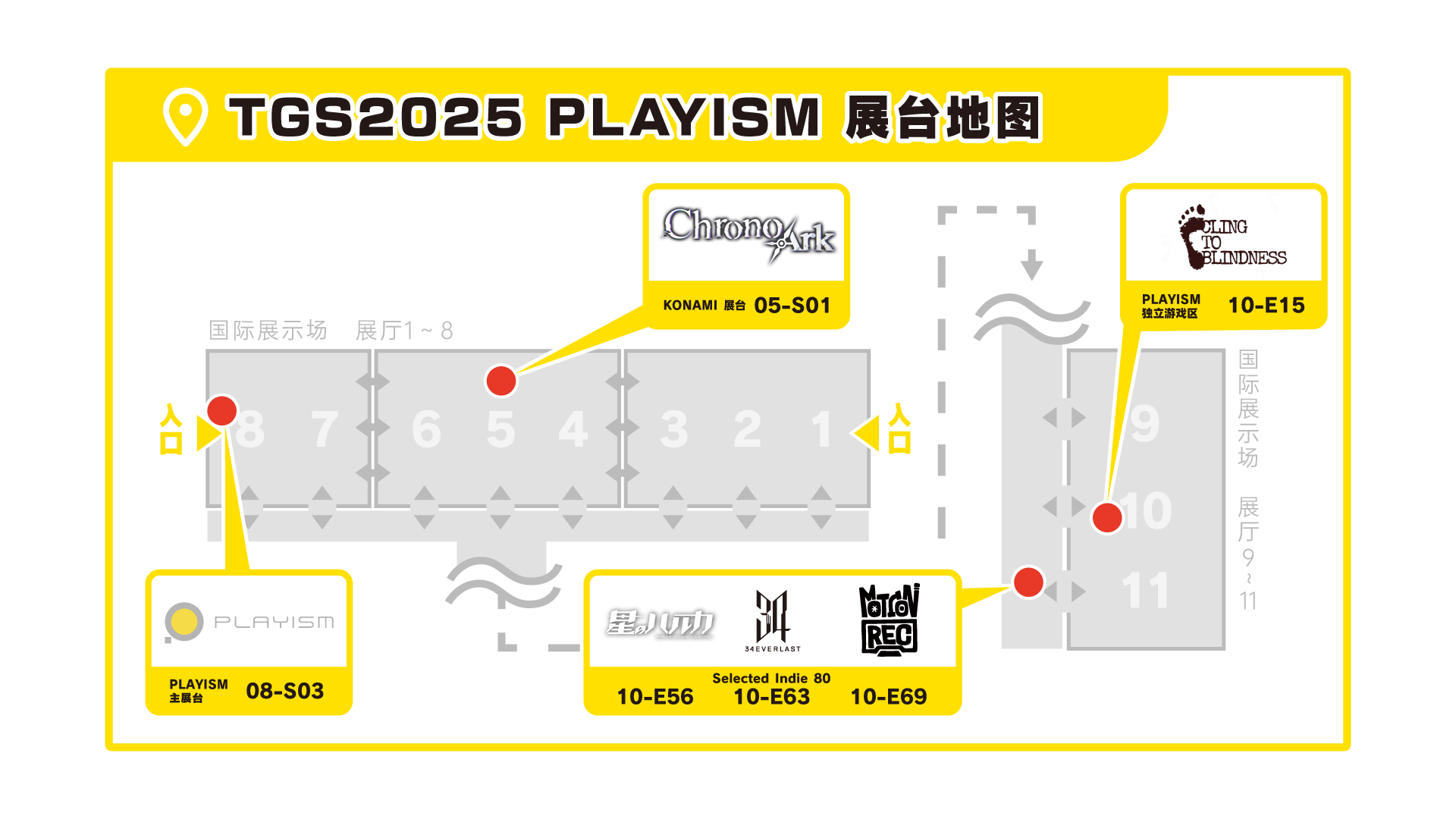 展台位置:08-S03(PLAYISM展台)、11-E19(HYPER REAL展台)、E-63(SELECTED INDIE 80)