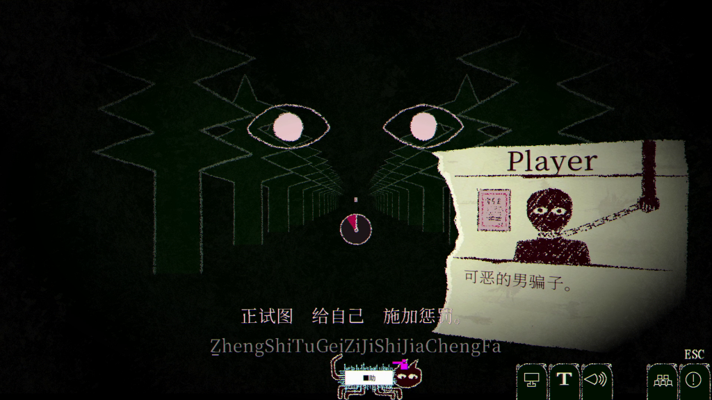 如果按照眼球在屏幕上的指示进行打字,等待玩家的将是自身的毁灭。